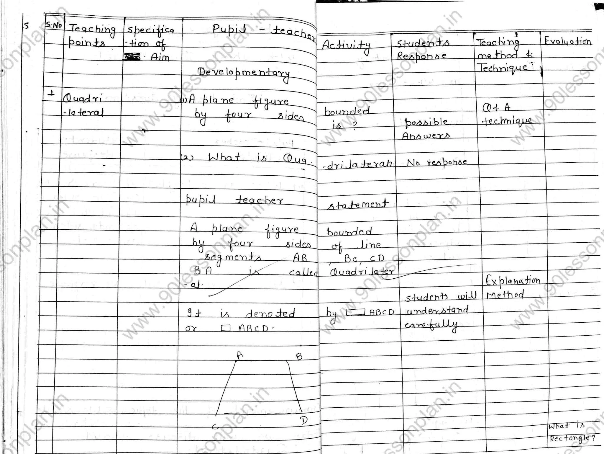 | Mathematics Lesson plan on Quadrilateral |